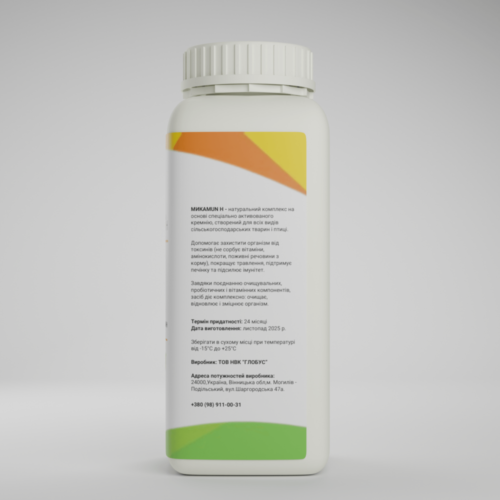 МИКАМУН Н — продукт на основі спеціально активованого кремнію, призначений для використання у годівлі сільськогосподарських тварин і птиці.