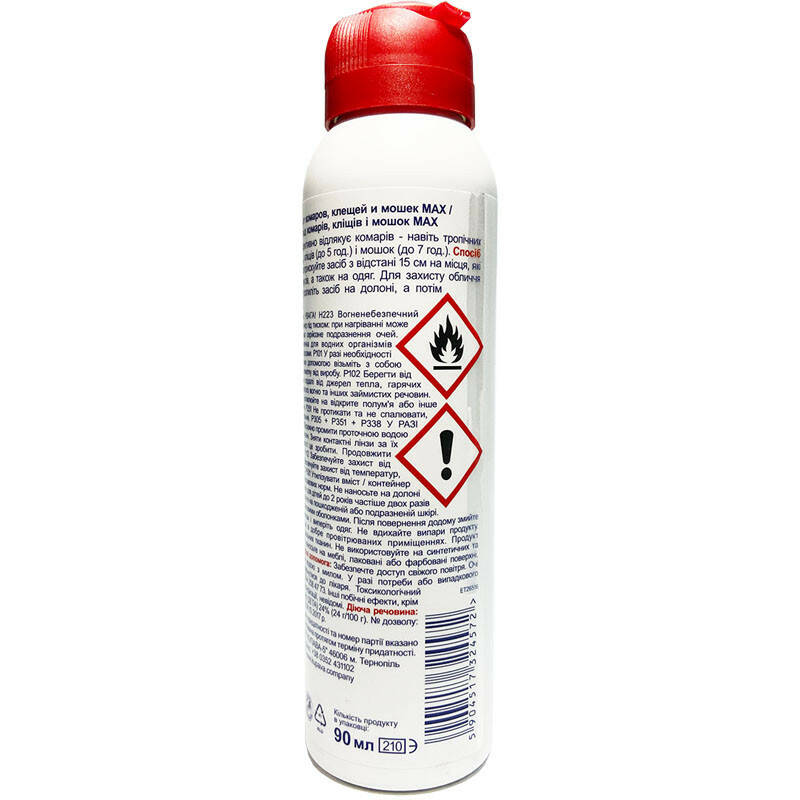 Аерозоль від комарів і кліщів Мах - це професійний аерозоль, застосовується для нанесення на тіло і одяг, з метою захисту від укусів комарів, москітів, кліщів і комах. До складу препарату входить органічний репелент останнього покоління "ДЕТА", який є безпечним для людини і не викликає алергічних реакцій на шкірі.