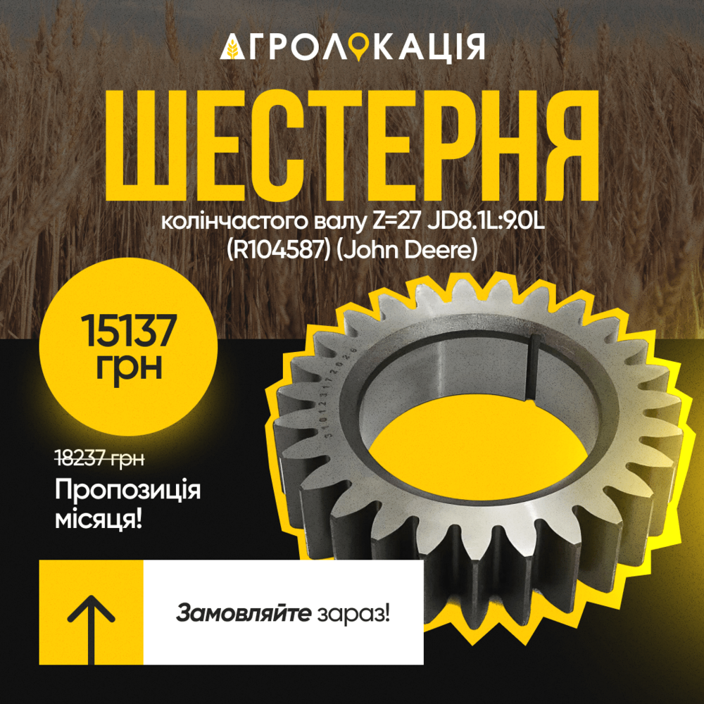 АГРОЛОКАЦІЯ Шестерня валу R104587 на техніку John Deere (унікальний ID: R104587)