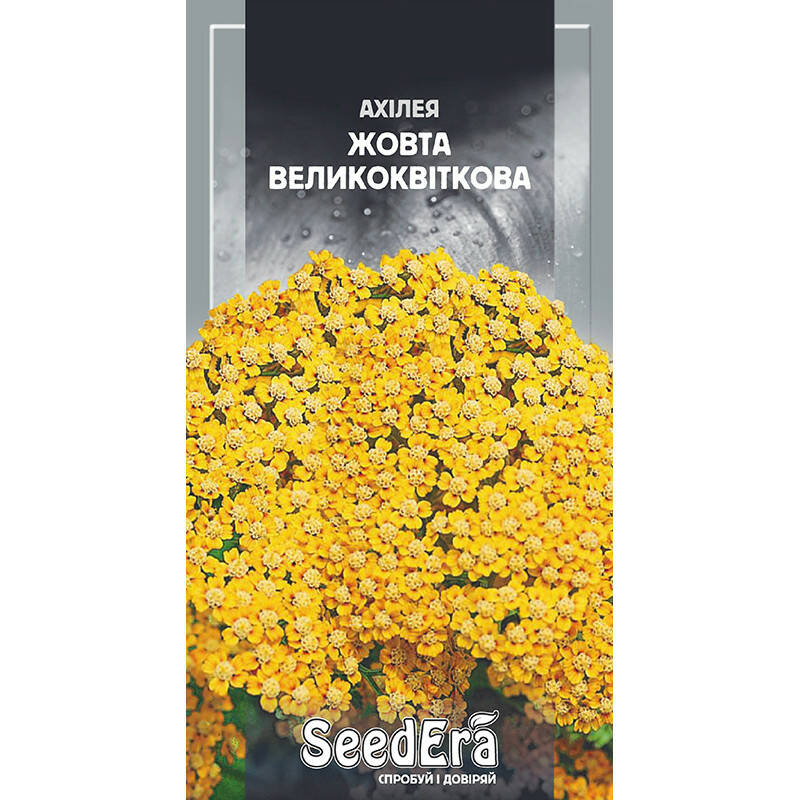 Ахілея Жовта великоквіткова - це багаторічна рослина. Кущ – гіллястий, прямостоячий. Суцвіття – дрібні кошики 4–10 мм в діаметрі. При вирощувані через розсаду, зацвітає в перший рік. Період цвітіння – 40–45 днів. Розростаючись, утворює пишні куртини. Чудово виглядає при оформленні саду і в букетах. Використовують, як сухоцвіт, для рабаток, бордюрів, групових посадок.