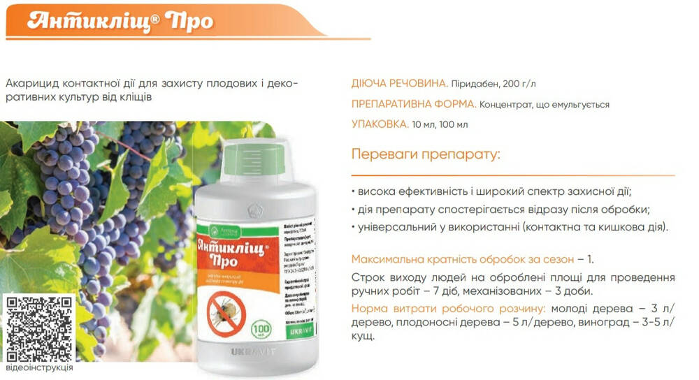 Антиклещ Про - Акарицид контактного действия для защиты плодовых и декоративных культур от клещей.