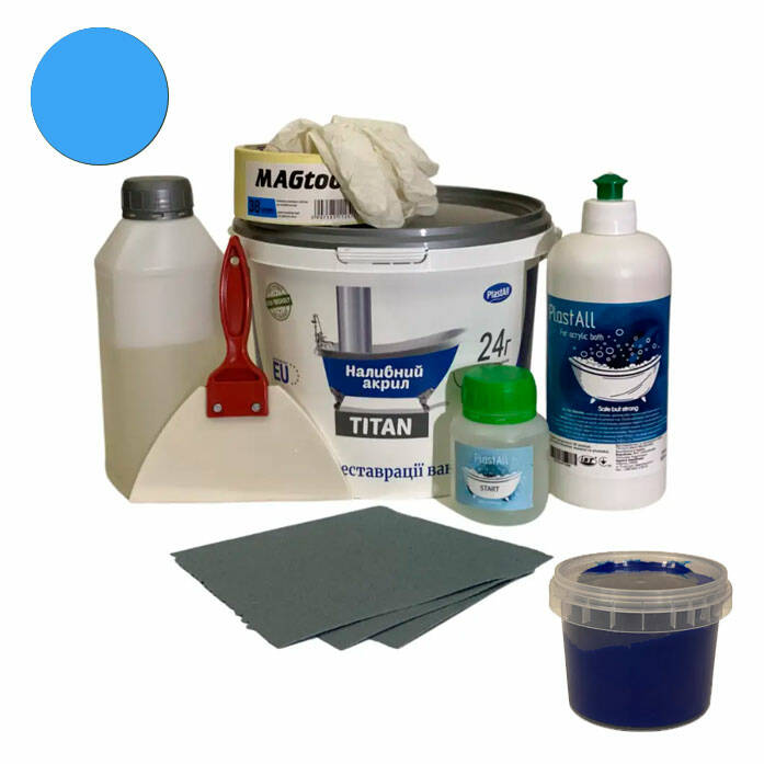 Акрил для ванн "Plastall-Титан" 1,2 м кольоровий Синій 2.4 кг з набором для реставрації ванн Оригінал