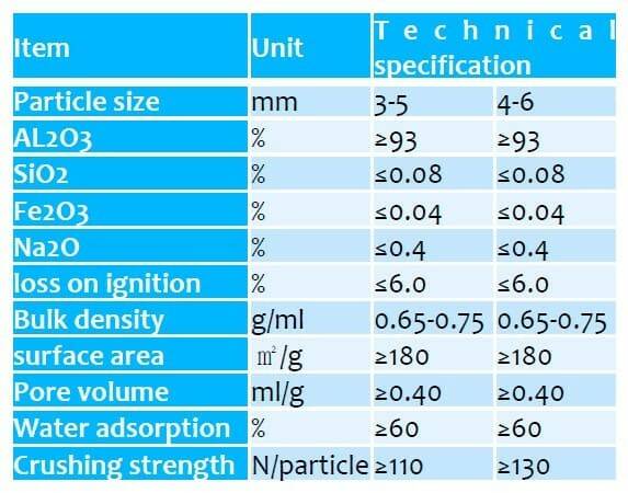 Застосування: він використовується як адсорбент для перекису водню методом антрахінонового процесу. Крім адсорбції лугу в рідині, він має високу регенераційну здатність для продуктів гідрогенізації деградації, і це може бути перенесення деградації гідрогенізації на антрахінон, щоб забезпечити стабільність загального ефективного антрахінону. Так що, це може заощадити витрати. Крім того, враховуючи необхідність регенерації, оксид алюмінію для перекису водню може забезпечити відмінну роботу механізму у вигляді невеликих змін активності після регенерації.