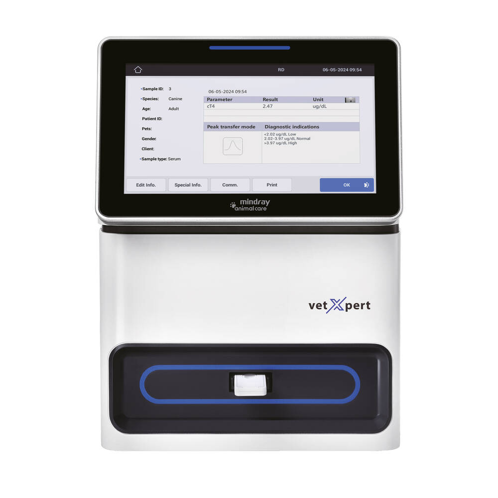 Робота ветеринарного імунологічного аналізатора vetXpert I3 базується на методології імунохроматографії та клінічно використовується для кількісного або напівкількісного виявлення аналітів у рідинах організму тварин (таких як цільна кров, сироватка, плазма, попередньо оброблені виділення з очей, носа та горла, фекалії тощо), включаючи антигени, антитіла, гормони, ферменти та інфекційні захворювання.
