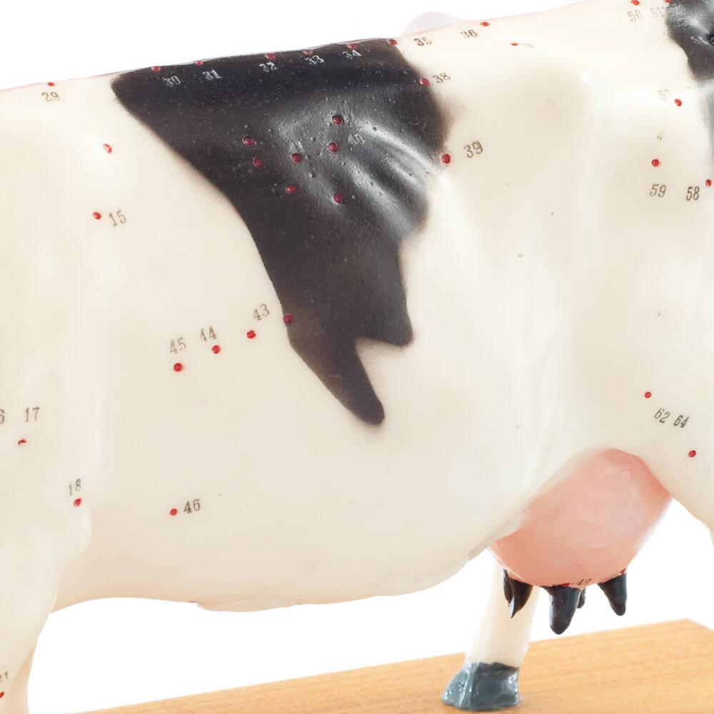 Ця модель надає ветеринарам, які спеціалізуються на великих тваринах та альтернативним фахівцям з догляду за тваринами візуальну підтримку при проведенні акупунктури на корові. Акупунктурна модель корови демонструє шкіру тварини з найважливішими акупунктурними точками, а також грубе зображення мускулатури, скелета та внутрішніх органів.