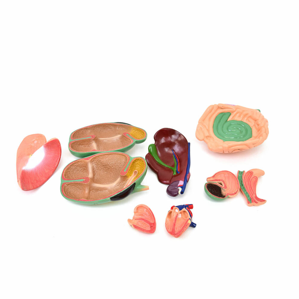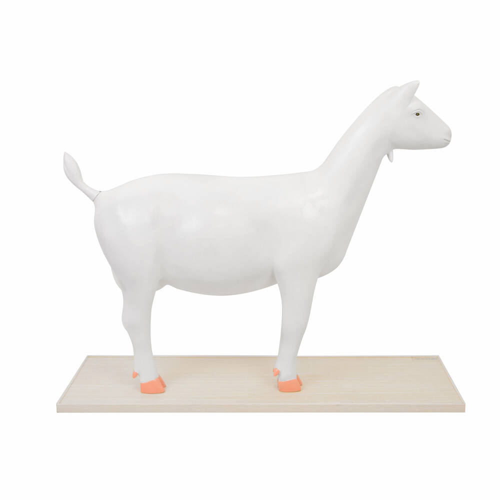 Представлена анатомічна розбірна модель кози складається з двох частин, які можна роз'єднати посередині. Всередині розміщено внутрішні органи, які можна вийняти і більш детально розглянути. Також на моделі з одної сторони наглядно показано будову м'язів та сухожиль, а з іншої — шкірний покрив.