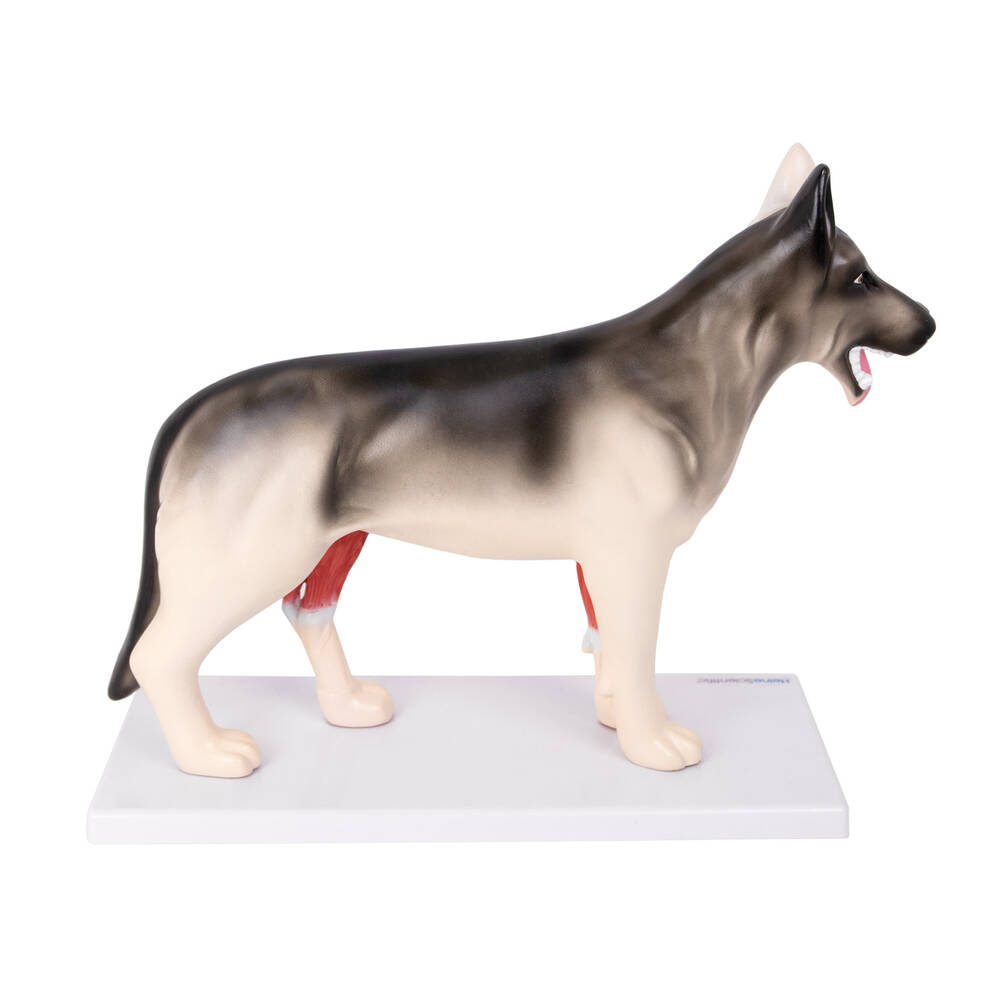 Розбірна модель собаки складається з двох половинок, одна з яких показує зовнішню сторону собаки, зображуючи шерсть і слизові оболонки, а інша половина моделі показує собаку без шкіри, оголюючи м'язи і сухожилля. Анатомічну модель можна розбирати на частини, що дозволяє побачити внутрішні органи та хребетний стовп. Внутрішні органи можна витягти з тіла, відкрити пряму кишку і сечовий міхур.