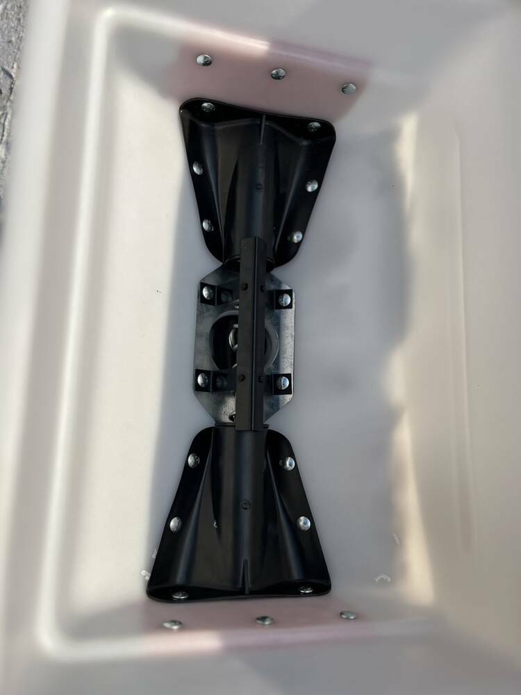 Корпус виготовлений із м’якого ударостійкого полімеру, який не піддається корозії, не тріскається від вібрацій та добре переносить перепади температур. Усередині встановлений металевий вал-шнек із міцною металевою пружиною, що забезпечує примусове та рівномірне дозування добрив без залипання навіть при підвищеній вологості.