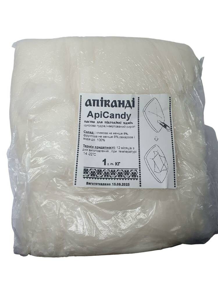 АпіКанді – готове підживлення для бджіл у пастоподібній формі, що складається в основному з сахарози. Кристалічний цукор перемелений до мікроскопічних кристалів, які в середньому менше ніж 1/100 міліметра. Кожен монокристал покритий тонкою плівкою сиропу, який виготовлений із розчинних цукрів (глюкози та фруктози), яка запобігає утворенню кристалів та центрів кристалізації. Завдяки цьому бджоли легко вживають канді.