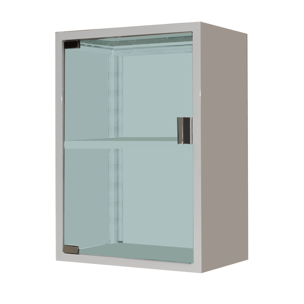 Дверцята можуть бути виконані зі скла або металу (на вибір), оснащені надійним магнітним замком. Скляний фасад дозволяє швидко перевірити наявність препаратів без відкривання дверцят, що підвищує зручність і безпеку користування.
