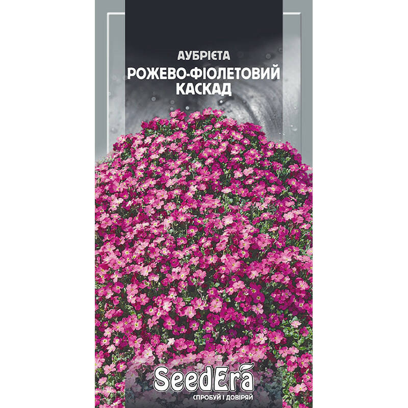 Аубрієта Рожево-фіолетовий каскад - це багаторічна, трав’яниста рослина висотою 10-15 см. Стебла дуже гіллясті, розростаючись, утворюють кулеподібні куртини. В період масового цвітіння рослина повністю вкрита квітами, діаметром до 1,5 см. Не переносить важких ґрунтів. Має яскравий вигляд в кашпо, балконних ящиках, у вазонах. Чудова бордюрна рослина, крім того її використовують для групових посадок в квітниках і на альпійських гірках.