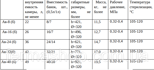 Емкость (количество банок): банка 0.5л. – 8 шт.;
