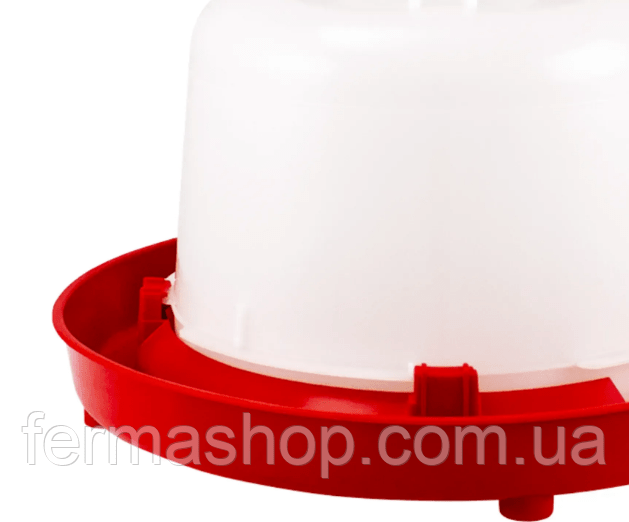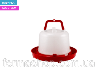 Вакуумная поилка объемом 5 литров – компактное и функциональное решение для поения птицы (кур, уток, гусей, фазанов, павлинов). Конструкция предусматривает эргономичную ручку с очком для подвешивания или переноски, а также чашу-поддон с куполом, включающий ножки или опоры для крепления ручки. После наполнения купола вода поступает через отверстие в поддон и заполняет канавку до установленного уровня – принцип вакуумного заполнения обеспечивает чистоту воды и минимизирует расход.