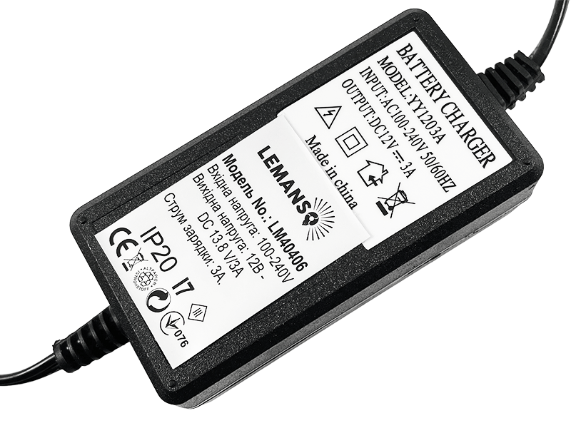 Автоматичний зарядний пристрій 100-240V для акумулятора 12В - DC 13.8 V/3A+крокодили LM40406 Лємансо