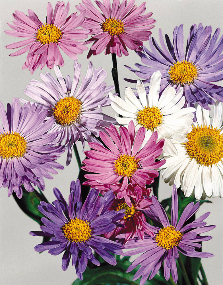 Айстра Альпійська суміш – багаторічна вічнозелена трав'яниста рослина висотою 25 см. Суцвіття - поодинокі кошики 6-8 см у діаметрі. Насіння сіють на розсаду в березні. На постійне місце рослини висаджують наприкінці травня, на відстані 25-30 см одна від одної. Невибаглива, світлолюбна, морозостійка універсальна рослина. Цвіте з травня до заморозків. Найчастіше використовується для бордюрів, міксбордерів, на альпійських гірках.