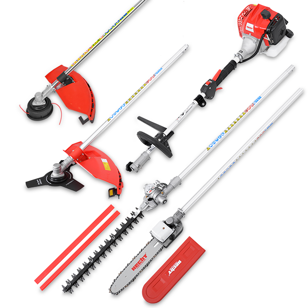 HECHT 1331 - багатофункціональний агрегат 4 в 1 за ціною однієї машини. Добре працює як кущоріз, триммер, висоторіз та пилка. Пилка, триммер для живоплоту, ніж і головка триммера входять в комплект, один подовжувач стрижень включений для використання з підрізної пилкою або тримерами для живоплоту. За допомогою пилкии ви можете легко обрізати високі зелені насадження, висотою більше 3 м .