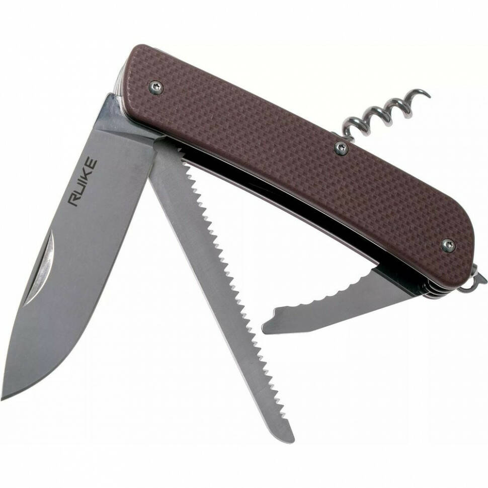 Бренд Ruike швидко набуває популярності, адже під ним випускаються якісні і довговічні складні ножі. Наприклад, модель L32 призначається для використання як на щоденній основі, так і в заміських поїздках. Це багатофункціональний ніж, в якому об'єднані відразу кілька корисних інструментів. Основним з них є гладко клинок заточений розміром 85 мм. Він має товщину по обуху 3 мм і цілком підходить для роботи не тільки з продуктами харчування, але і з різними іншими матеріалами. Для виготовлення всіх інструментів використовується нержавіюча сталь марки12С27. Це нержавійка шведського виробництва, що широко застосовується у виробництві туристичних та інших ножів. Її якості добре збалансовані і метал є одночасно твердим, але не тендітною, корозійностійким, добре зберігає заточку. До її складу входять такі легуючі елементи, як хром, марганець, молібден і кремній. Ця сталь загартовується при низьких температурах до твердості 58-59.