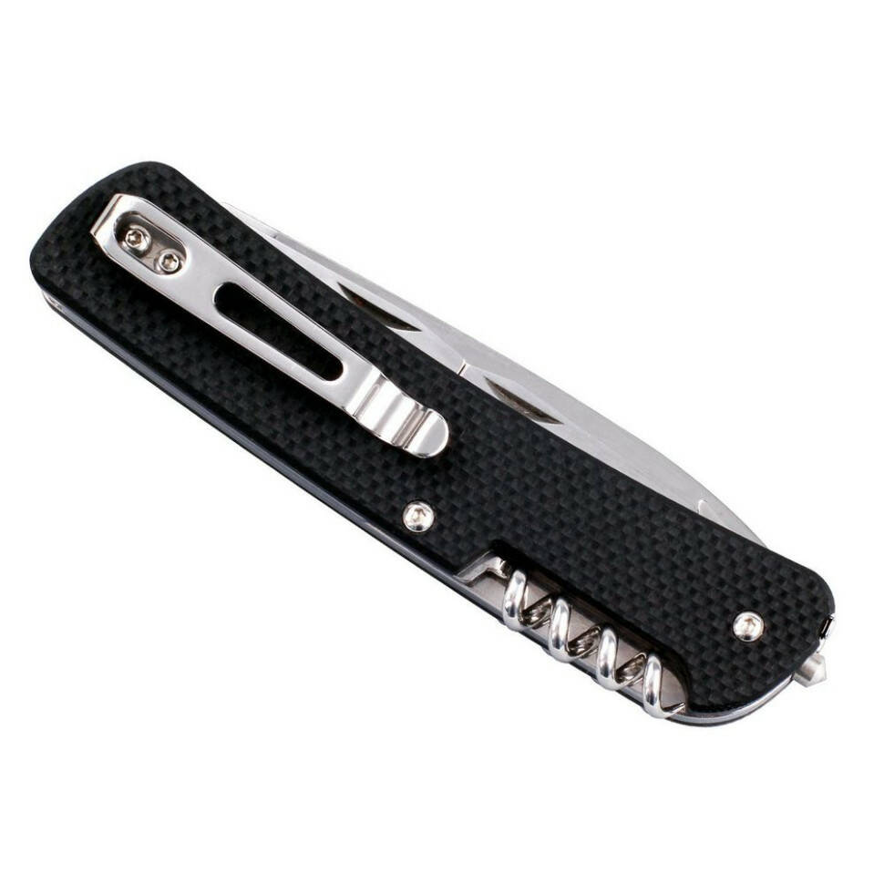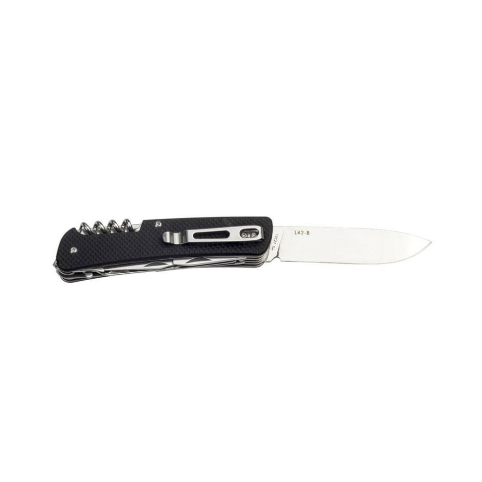 Не менш важливу функцію ніж ніж, грають і інші інструменти, вбудовані в Ruike L42. У нижній частині рукоятки розміщені пила по дереву, зменшені в розмірі ножиці, шило, дві прямі викрутки (мала і середня), стропоріз, відкривачку для пляшок, інструмент, зачищающий дроти від ізоляції. Із зворотного боку рукоятки можна дістати штопор. Ще два інструменту поміщені зі сторони торця – це склобій і невеликий кільце для підвішування до ножа темляка.
