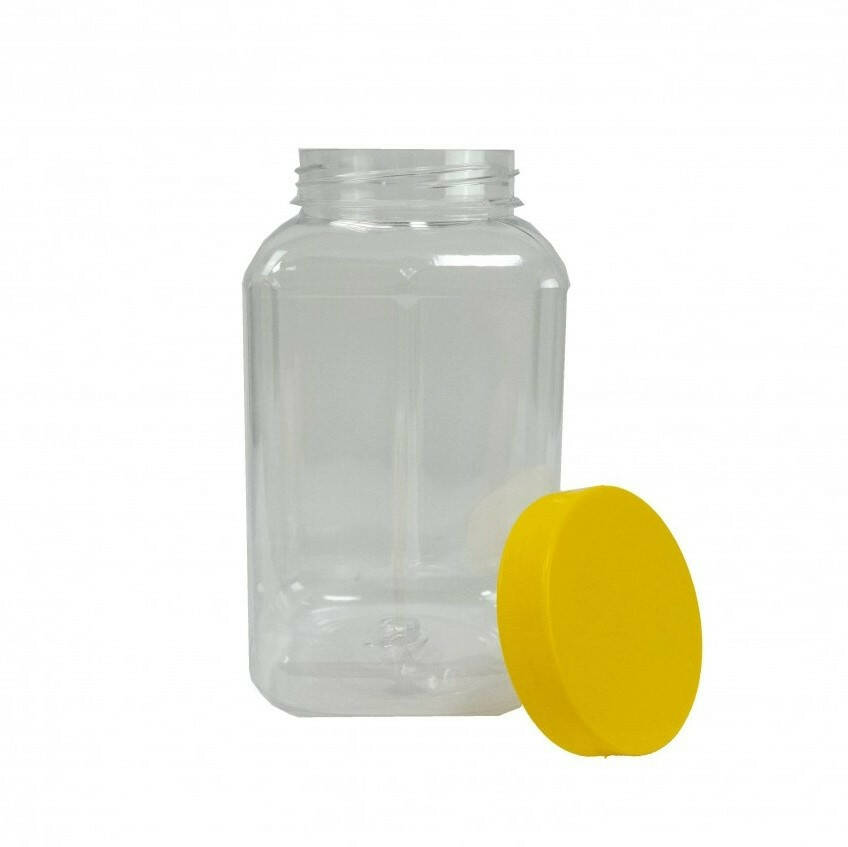 Банка пластикова 1літр з кришкою - практичне рішення для пакування меду, харчових продуктів, харчових добавок та інших сипучих чи рідких продуктів. Пластикова банка квадратною форми з герметичною кришкою ідеальне рішення для пересилки меду перевізниками, має вишуканий дизайн завдяки закругленим кутам.