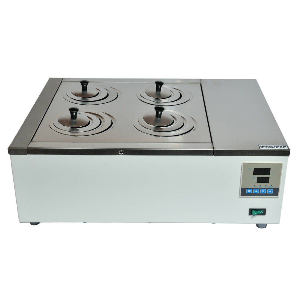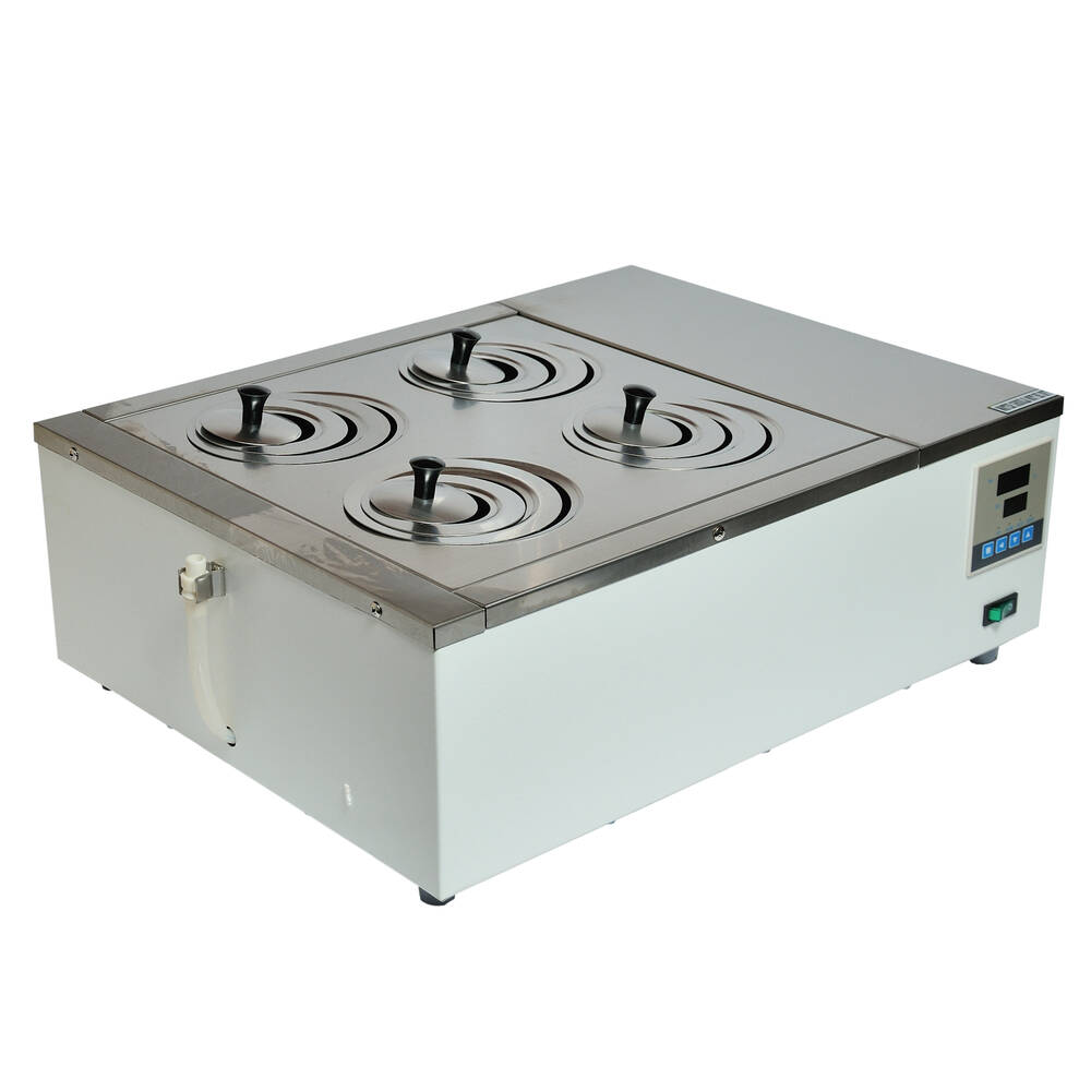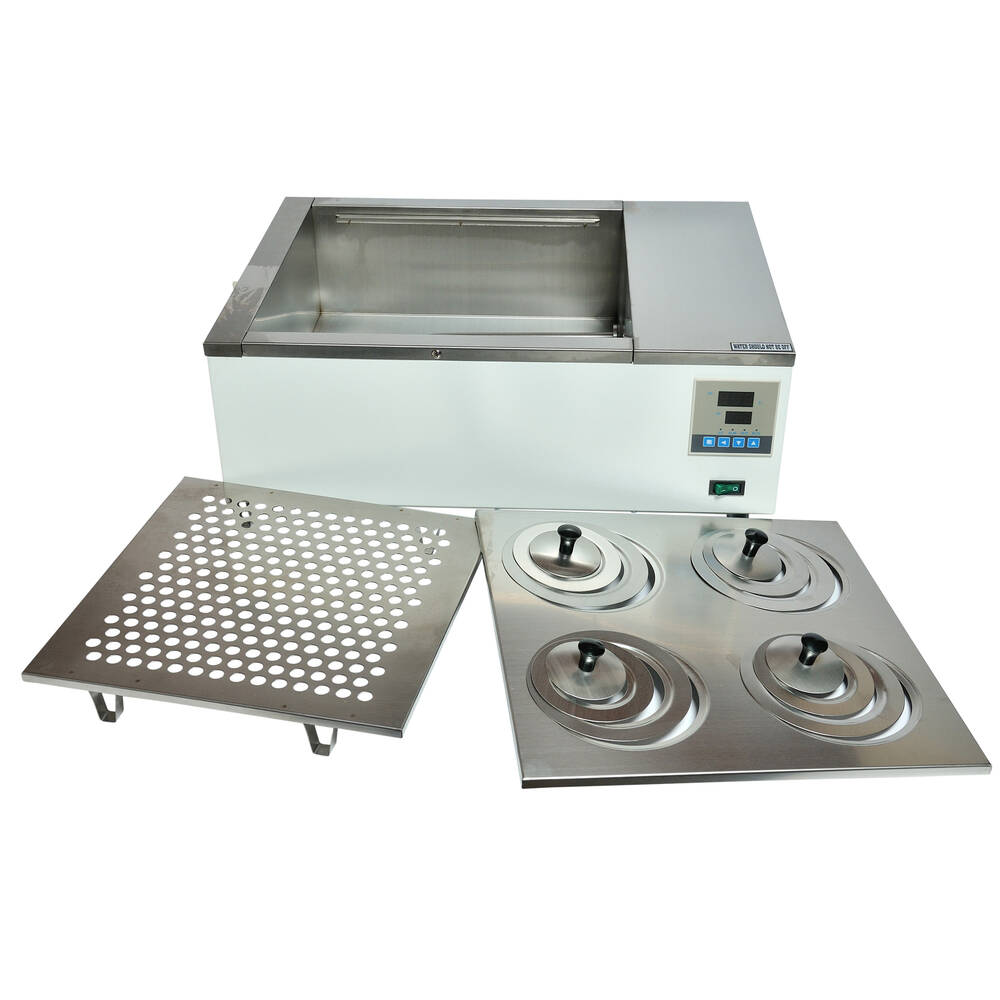 • У водяній бані передбачено цифрове управління, а одночасне відображення заданої та поточної температури з точністю до 0,1 дозволить контролювати процес.