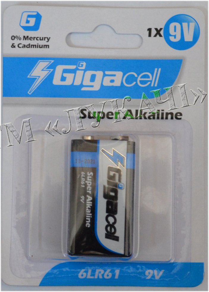 Батарейка на блістері Gigacell 6LR61 9V (крона) 12бл/упак