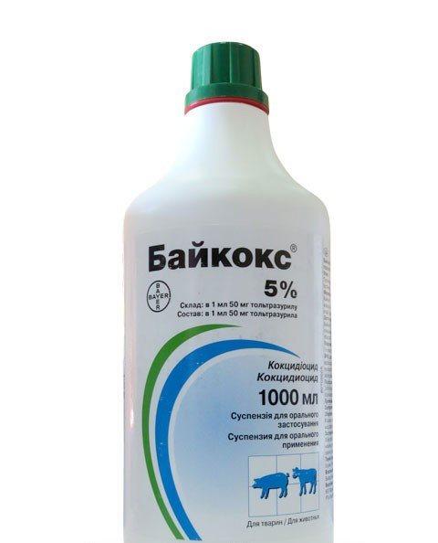 Байкокс 5% призначають поросятам з лікувальною і профілактичною метою одноразово на 3 – 5 день життя у дозі 20 мг толтразурила на 1 кг маси тварини. Препарат вводять тваринам індивідуально перорально за допомогою спеціального дозатора з розрахунку 0,4 мл суспензії на 1 кг маси тварини, але не менше 0,5 мл і не більше 2 мл на тварину. Перед застосуванням ємність з суспензією слід ретельно збовтати.