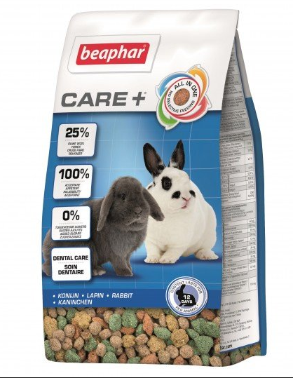 Повноцінний екструдований корм супер-преміум класу CARE + для кроликів має високий вміст клітковини для оптимального травлення. Кожна гранула має однаковий склад («все-в-одному») для збалансованого харчування і запобігання вибіркового поїдання без залишку. Спеціальні тверді гранули забезпечують природне сточування зубів (Dental Care).