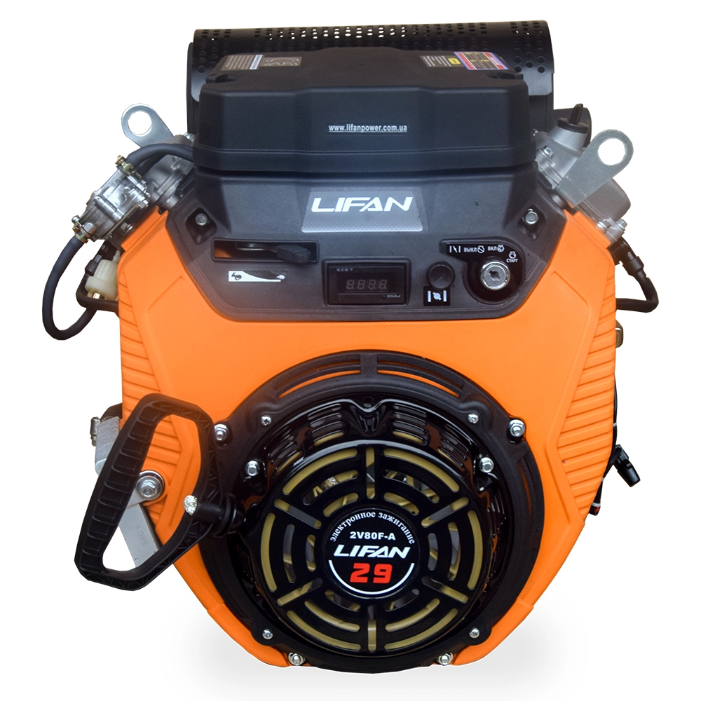 Бензиновий двигун загального призначення LIFAN LF2V80F-A агрегат оснащений системою електрозапуску з інтегрованим у корпус фронтальної панелі двигуна замком запалювання та лічильником мотогодин, а також пропонована комплектація двигуна забезпечена нетиповою для більшості аналогів опцією - ручним стартером або кікстартером.