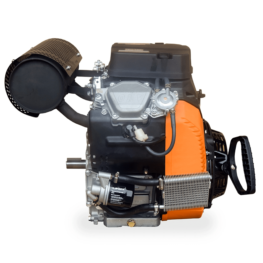 Бензиновий 4-тактний, V-подібне розташування, двоциліндровий, верхньоклапанний (OHV), з додатковим радіатором охолодження масла, масляним фільтром та примусовим повітряним охолодженням