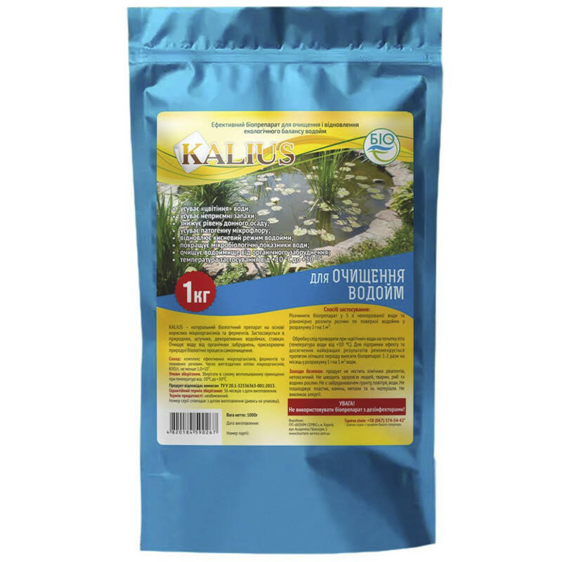 Каліус для очищення водойм –натуральний біологічний препарат на основі корисних мікроорганізмів та ферментів. Застосовується в природних, штучних, декоративних водоймах, ставків. Очищує воду від органічних забруднень, прискорюючи природні біологічні процеси самоочищення
