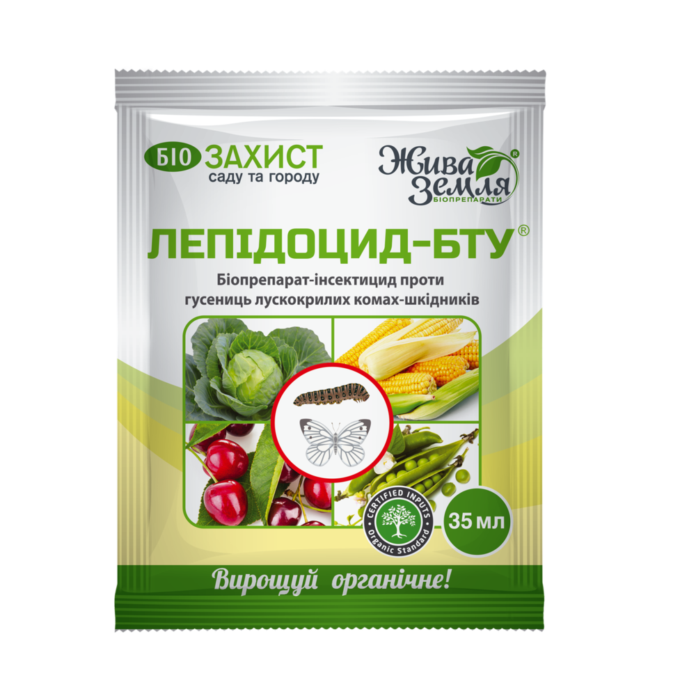 Біоінсектицид БТУ-ЦЕНТР ЛЕПІДОЦИД®-БТУ-р для захисту рослин від шкідників (лускокрилих комах) 35 мл