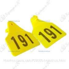 Бірка (кліпса) вушна 60*75 мм з номером жовта для ВРХ уп 100 шт