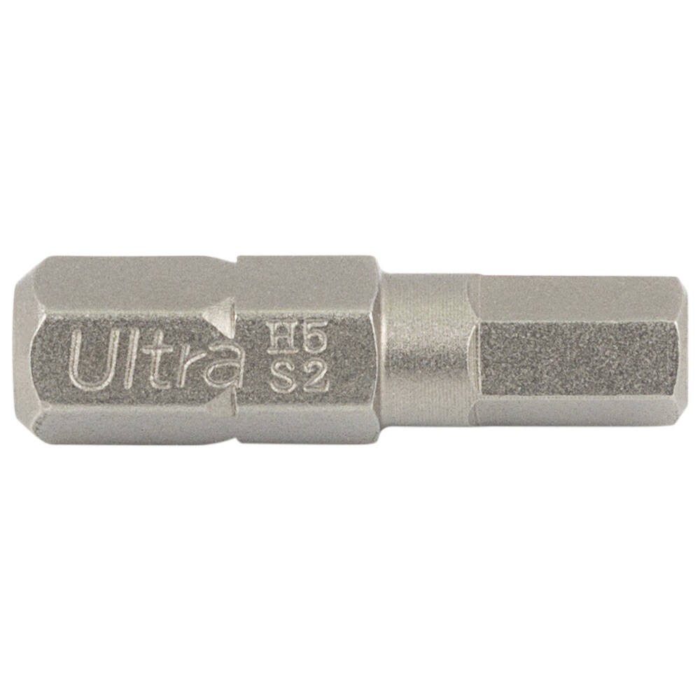 Біти HEX 5×25мм ¼" 10шт S2 (блістер) ULTRA (4015002) призначені для професійного використання. Виготовлені з легованої інструментальної сталі S2 з поверхневим зміцненням до твердості 58-61 HRC струмами високої частоти (СВЧ). Мають проточенну головну частину для роботи у вузьких місцях.