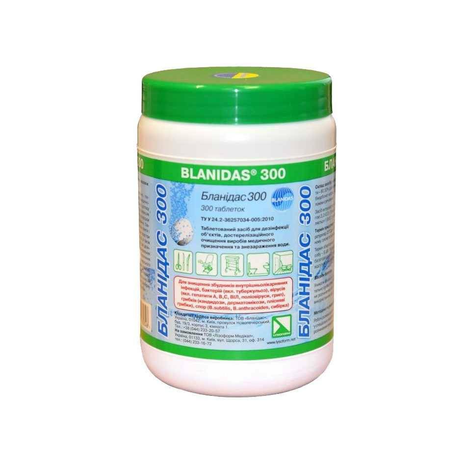 БЛАНІДАС (BLANIDAS) 300 дезінфікуючий засіб у таблетках, 300 шт. Універсальний засіб, що містить хлор, для знезараження використаних медичних виробів одноразового використання, перев'язувального матеріалу, харчових відходів.