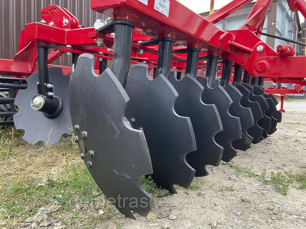 Дискова борона входить в перелік самої затребуваної сільськогосподарської техніки для передпосівної обробки грунтів. Головною особливістю агрегату є оригінальна конструкція підвіски з вирізними дисками. Їх форма, діаметр і кут нахилу підібрані так, щоб продуктивність обробки ріллі була максимальною, а енергоємність - мінімальною.