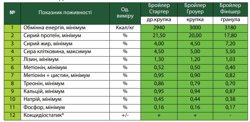 ЕНЕРГЕТИЧНА ЦІННІСТЬ ТА ПОКАЗНИКИ ПОЖИВНОСТІ КОРМІВ ГОТОВИХ ДЛЯ КУРЕЙ-БРОЙЛЕРІВ ЛІНІЇ «ОПТИМУМ-ФЕРМЕР»