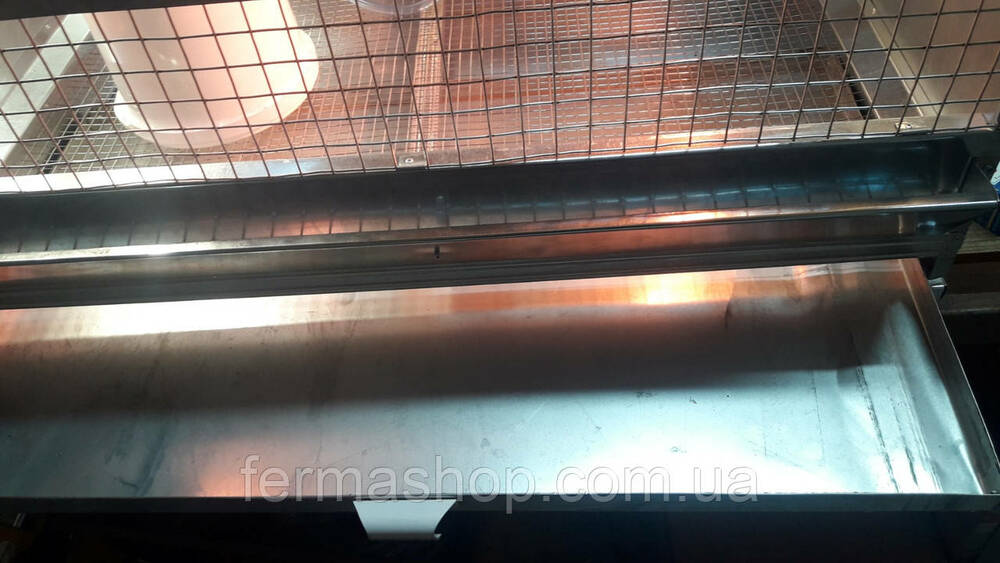 Боковые стенки клеток имеют отбортовку, помет собирается в центре поддона, а углы и боковые стенки поддона остаются чистыми. На поддоне есть ручка для удобства выемки.