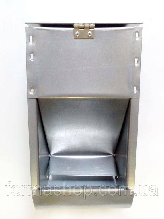 Кормушки для кроликов с крышкой бункерного типа (навесные, наружные) из оцинкованной жести. Для засыпки зерносмеси.