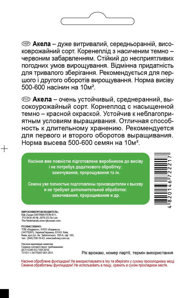 Дуже витривалий, середньоранній, високоврожайний сорт. Коренеплід з насиченим темно – червоним забарвленням. Стійкий до несприятливих погодних умов вирощування. Відмінна придатність для тривалого зберігання. Рекомендується для першого і другого оборотів вирощування. Норма висіву 500-600 насінин на 10м².