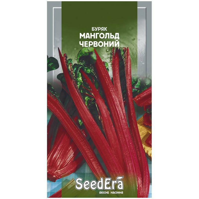 Буряк листовий Мангольд червоний - це овочева культура, яка вирощується для отримання зелені. Це велика рослина з потужнім листям, що досягають довжини до 45 см. Забарвлення листя та черешків різноманітне – від зеленого до яскраво-червоного кольору. В їжу використовують листя та черешки, що багаті на вітаміни, білки та мінеральні солі.