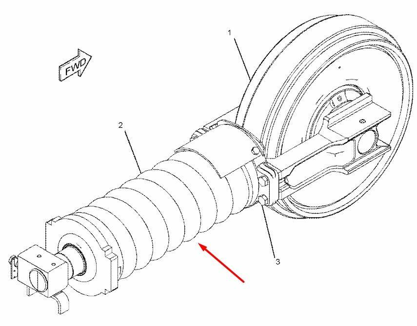 Натягувач гусениці 2487136 є частиною ходової системи гусеничної техніки. Він працює в комплексі з провідними зірочками, направляючими колесами та катками, щоб підтримувати натяг гусениць.
