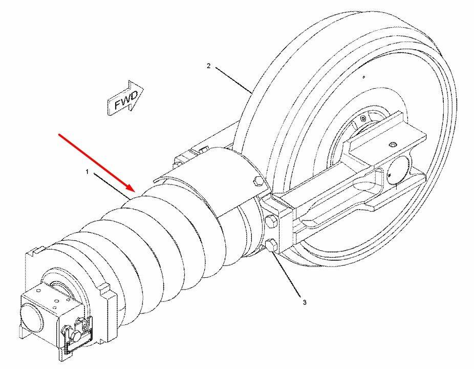 Натягувач гусениці 2979187 є частиною ходової системи гусеничної техніки. Він працює в комплексі з провідними зірочками, направляючими колесами та катками, щоб підтримувати натяг гусениць.