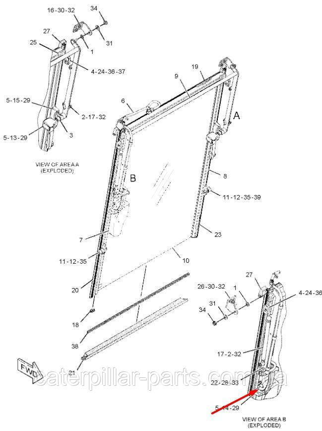 Права дверна ручка для кабіни оператора CATERPILLAR 422E, 422F, 428E, 428F, 432E, 432F, 434E, 434F, 442E, 444E, 444F (cat, кат, катерпілар)