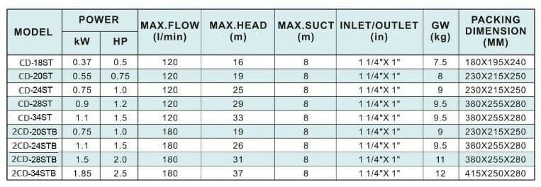 Ebara СD, Ebara СDX, Lowara CEAM, Pedrollo CP-ST, Speroni CMX