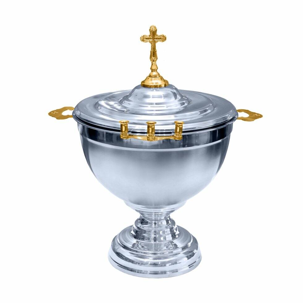 Представлені в нашому каталозі вироби виготовлені з якісного безпечного металу, мають кришку з хрестиком, ручки для перенесення, комірки для трьох свічок. Ви можете підібрати ємності об'ємом від 1,5 до 12 літрів.