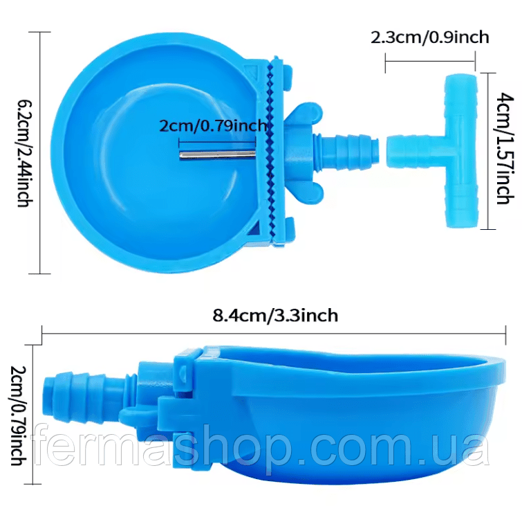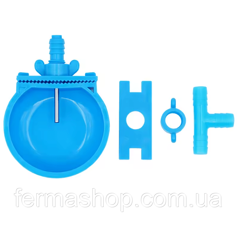 О поилке: под шланг 8 мм. В комплект входят: поилка (чашка). пластина гайка тройник на 8мм