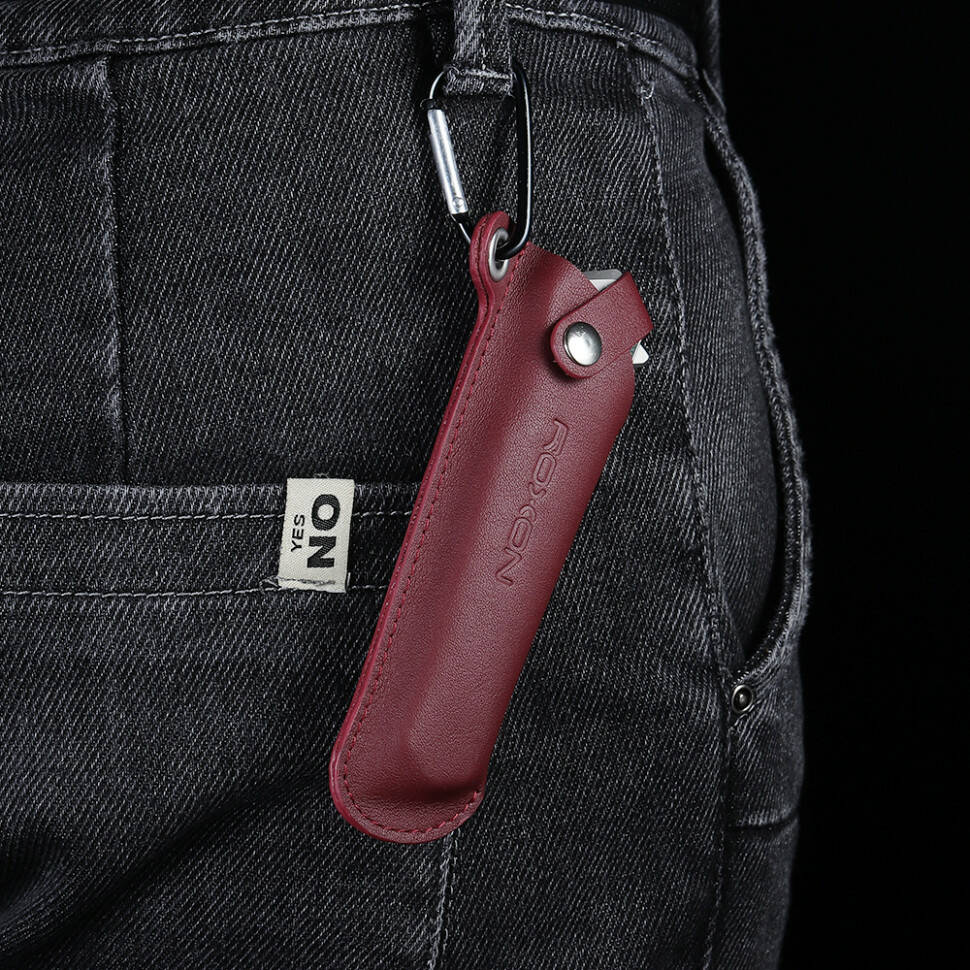 Стильний чохол від компанії Roxon призначений для носіння фірмового ножа K1 складаного типу. Аксесуар дозволяє зберегти початковий зовнішній вигляд інструменту; запобігаючи появі подряпин на його поверхні та захищаючи від негативного впливу вологи — основної причини появи іржі на металі.