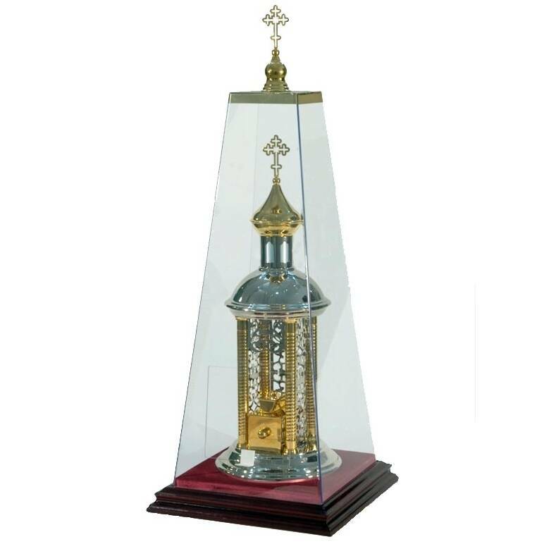 Доохоронці – гарна посудина у вигляді храму з скринькою для зберігання Тіла і Крові Господньої. У нашому інтернет-магазині церковного начиння ви можете вибрати вироби з латуні з карбуванням, лаком, позолотою. У комплекті йде ковпак із оргскла.