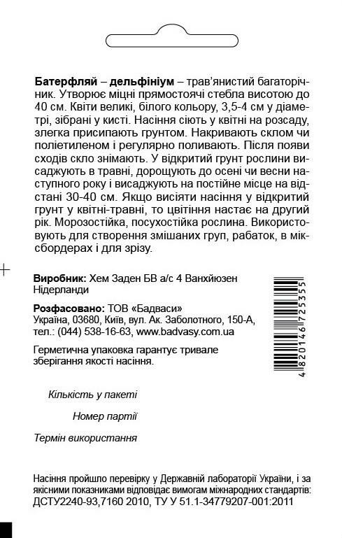 Дельфініум Батерфляй, білий, 0,2 г, Садиба Центр