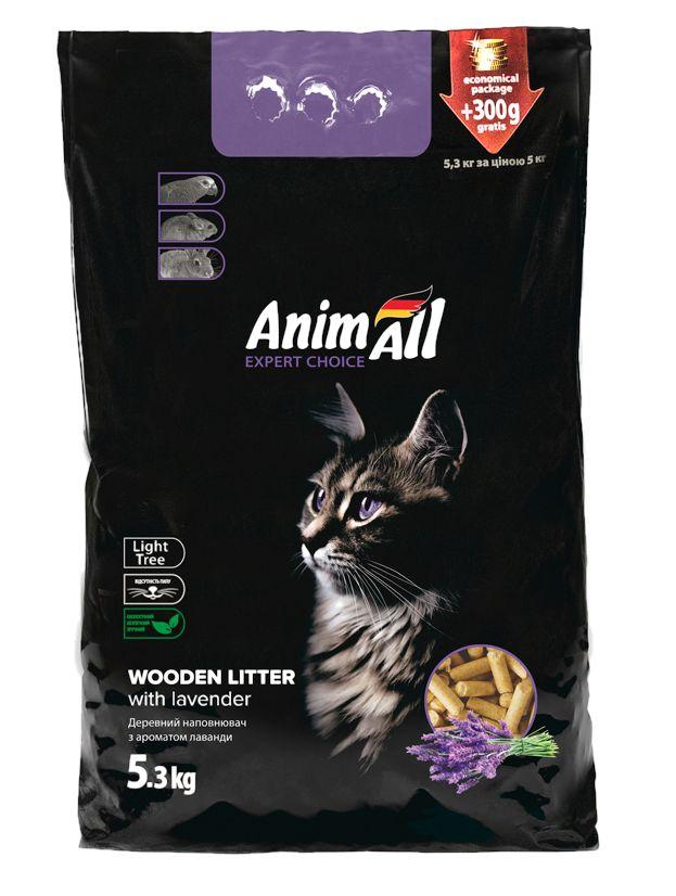 Деревний наповнювач для котячого туалету AnimAll wooden litter з ароматом лаванди 5.3 л